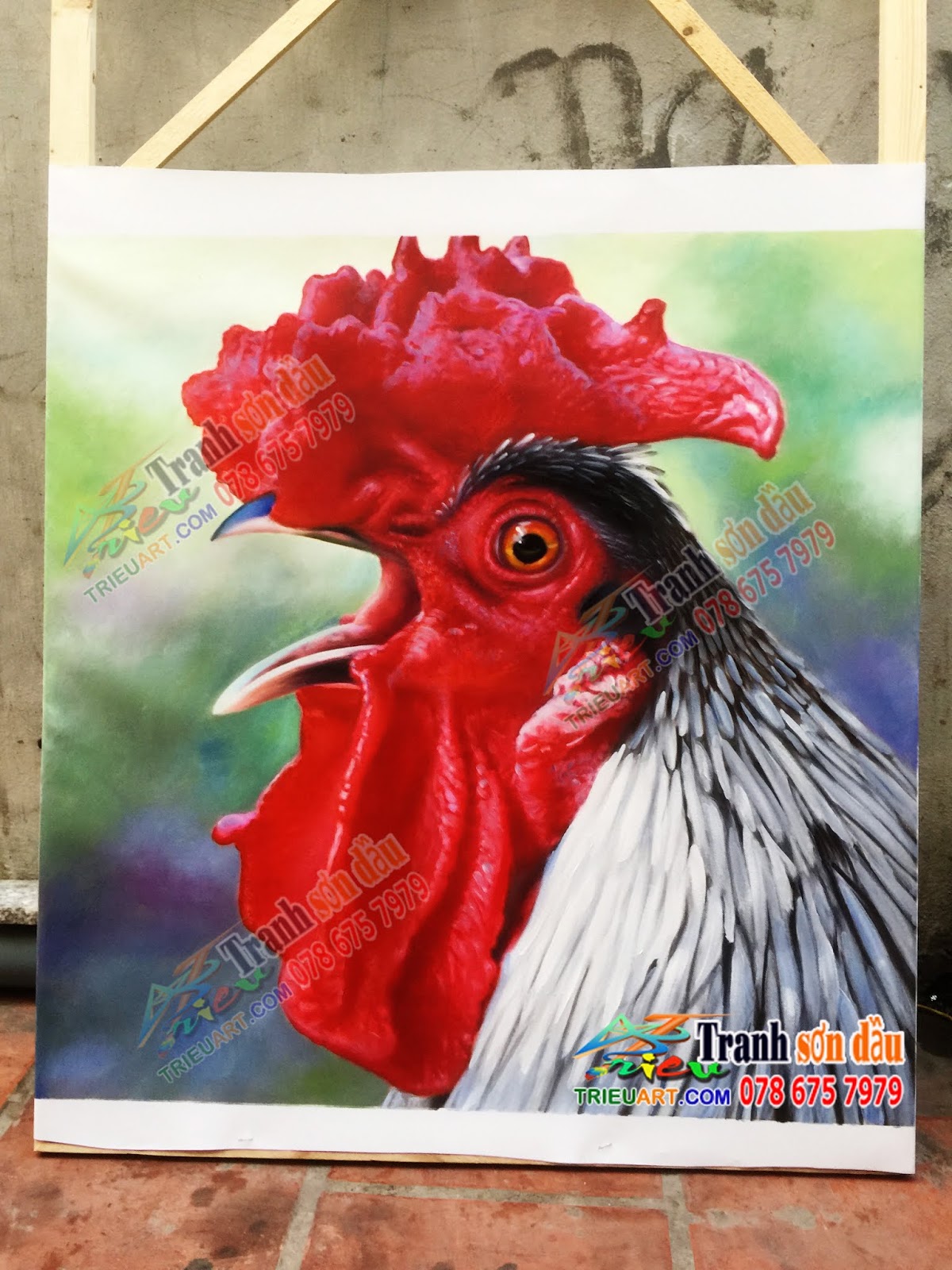 Tranh sơn dầu vẽ gà trống được các họa sĩ xưởng vẽ tranh sơn dầu trieuart.com vẽ lại sống động, đậm chất nghệ thuật, tranh được vẽ bằng màu sơn dầu trên chất liệu vải bố cao cấp, vẽ bằng các màu sơn cao cấp của 3 nước nổi tiếng trên thế giới, như Anh, Pháp, Hà Lan…Xưởng vẽ tranh sơn dầu trieuart.com chỉ cung cấp mặt hàng tranh sơn dầu chất lượng đạt chuẩn quốc tế vớ giá gốc tại xưởng, áp dụng cho cả khách mua lẻ…Độ bền của tranh được sử dụng trên 20 năm, khách đặt vẽ được xưởng bảo hàng 5 năm…!