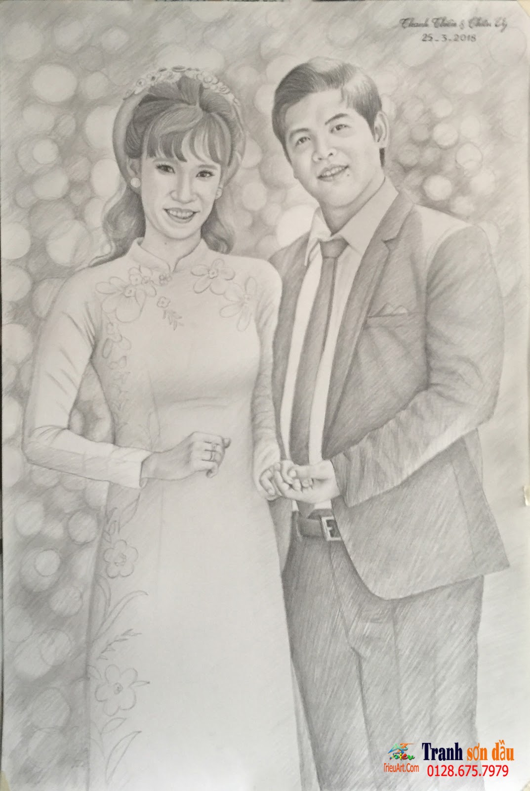 chân dung chì vẽ cô dâu chú rể