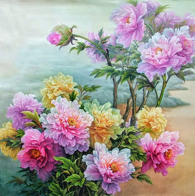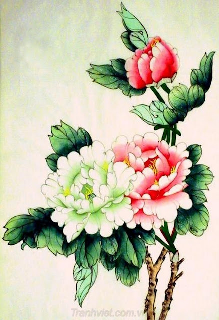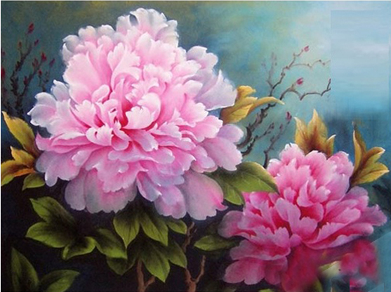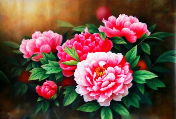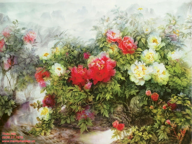 tranh sơn dầu hoa mẫu đơn