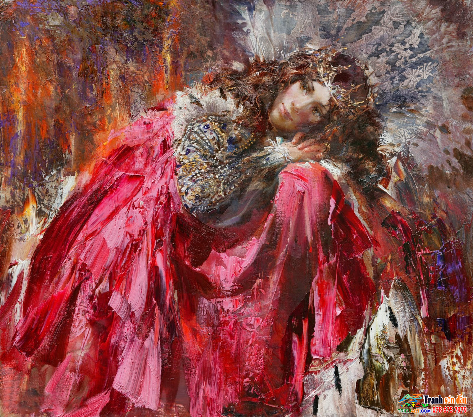 Tranh sơn dầu nghệ thuật, thiếu nữ lãng mạn