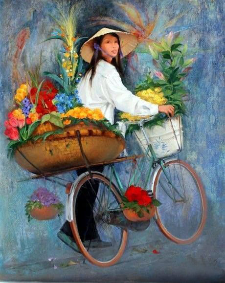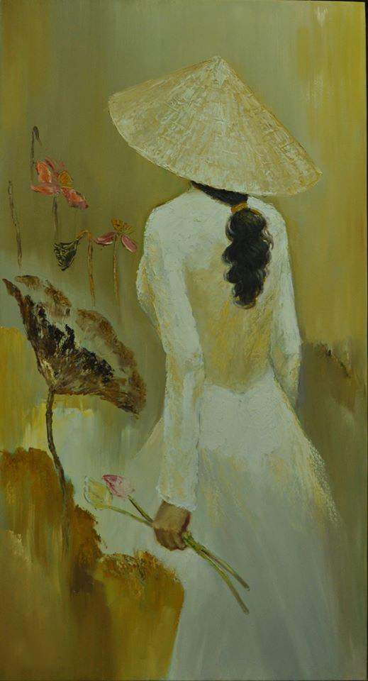 Tranh sơn dầu vẽ thiếu nữ Việt