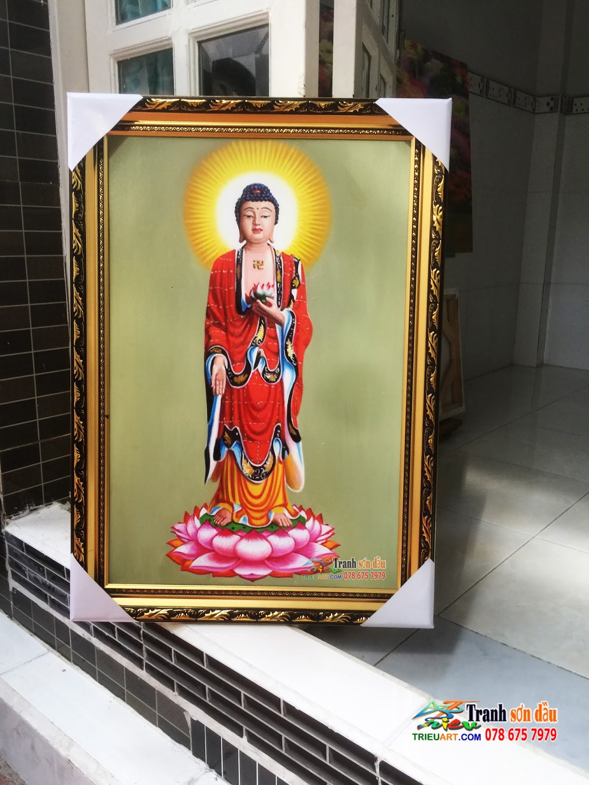 Tranh vẽ phật, tranh sơn dầu vẽ trên vải