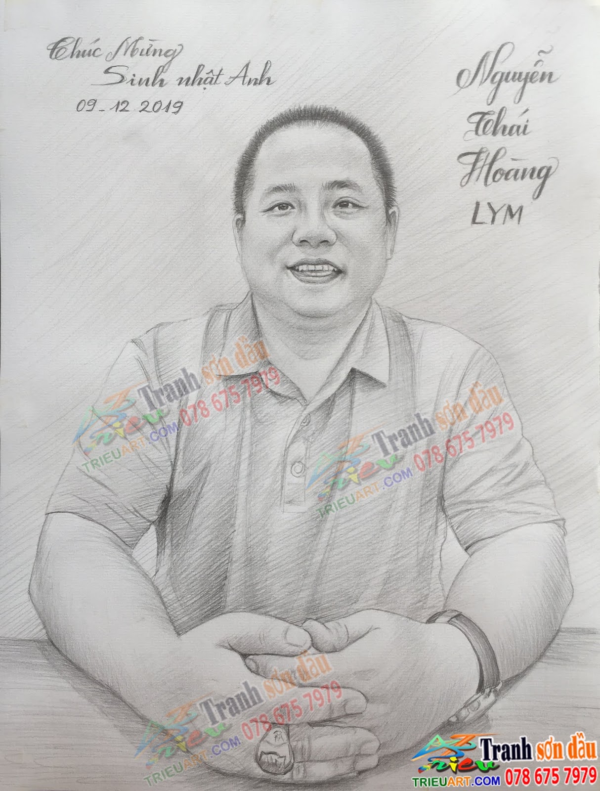 Vẽ chân dung chì tặng sinh nhật đối tác
